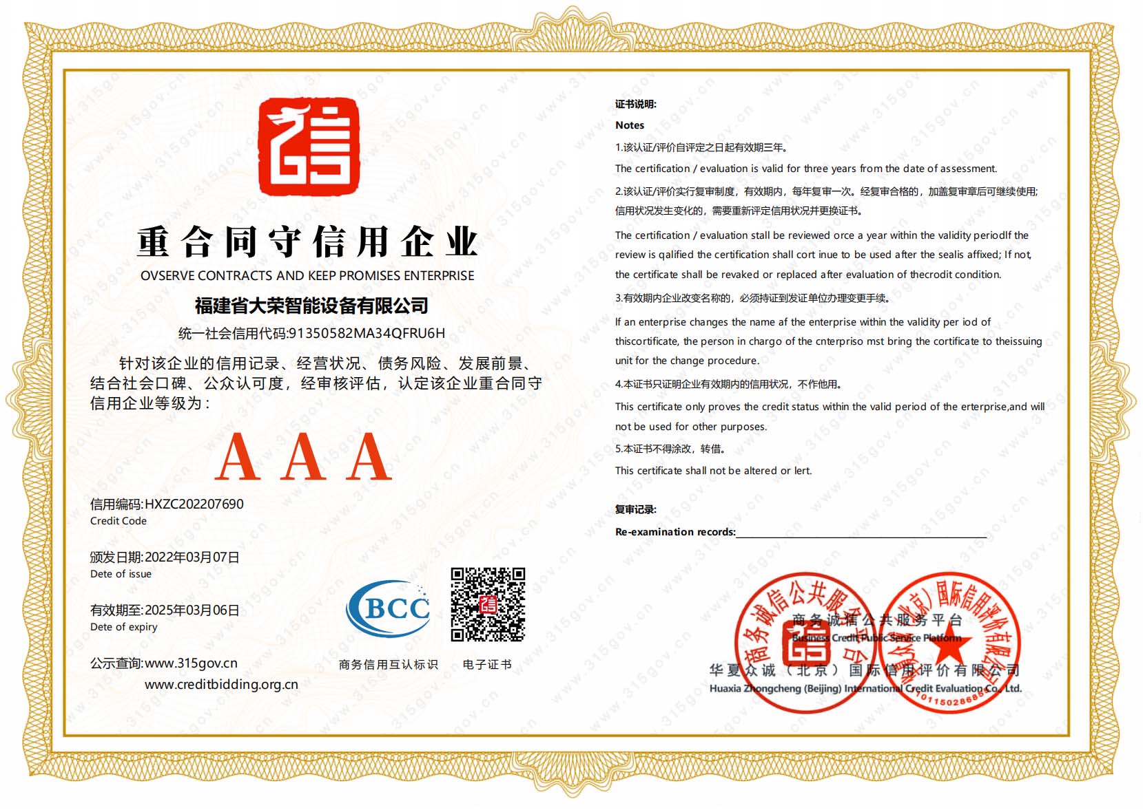 福建省大荣智能设备有限公司是一家专业从事10KV及以下中低压电力配网设备的研发、制造和销售为一体的企业,公司地处闽南金三角著名侨乡﹣晋江市,环境优美,交通便利。公司拥有优秀的电气工程师和专业的管理团队,具有先进专业的生产设备和检测装置,保障产品的工艺,质量要求。产品已通过中国质量认证中心,国家强制性产品3C认证,相关产品经国家电器安全质量监督检验中心检验合格,形成中低压配电柜等电力配网配套产品的产供销一条龙。 公司合理的设计理念,规范的生产工艺,专业的技术团队保证公司产品的质量,更巩固了产品在市场的竞争力。 目前我司合作客户已覆盖全国大部分地区,在金融、石油、化工、电力、交通、机械、纺织、地产等领域多有合作,深受广大客户的青睐和好评。 公司发扬“诚信、创新、拼搏、共贏”的企业精神,公司始终以“诚信经营,创造价值,服务为本,持续发展”的经营宗旨,逐渐得到市场认同,并在电カ设备市场树立良好形象。 Fujian Darong Intelligent Equipment Co., Ltd. is an enterprise specializing in the R & D, manufacturing and sales of 10kV and below medium and low voltage power distribution network equipment. The company is located in Jinjiang City, a famous hometown of overseas Chinese in the golden triangle of Southern Fujian, with beautiful environment and convenient transportation. The company has excellent electrical engineers and professional management team, advanced professional production equipment and testing...... |